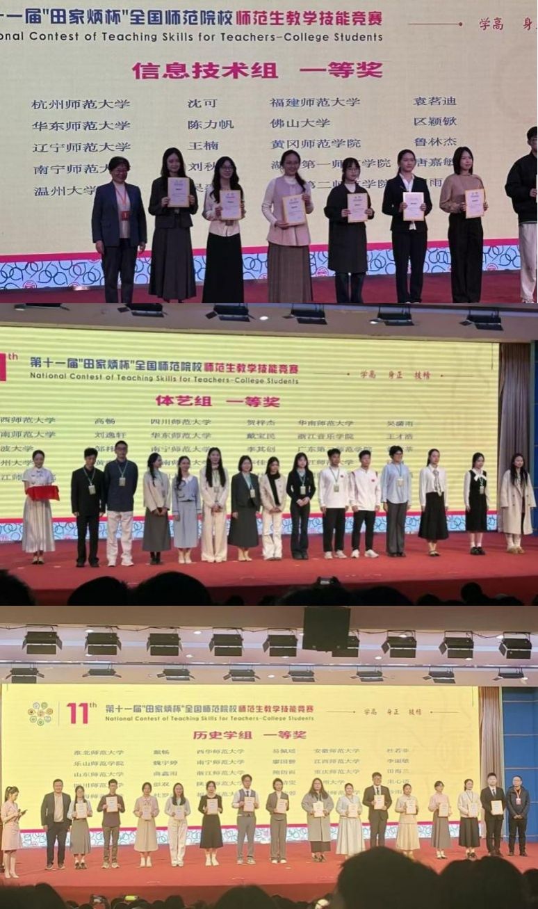 2025年11月28日至11月30日,第十一届“田家炳杯”全国师范院校师范生教学技能竞赛决赛在浙江师范大学举行。本届比赛吸引了全国包括六大部属高校在内289所师范院校共2345名选手参加初赛,参赛院校数与选手数均创历史新高。经初赛评审,共有178所学校564名选手入围此次决赛。决赛最终角逐产生一等奖188名、二等奖373名。swag视频 共5名选手参加决赛,斩获一等奖3名、二等奖2名。获一等奖数量排全国第13名,一等奖获奖比例排全国第10名,获奖人数及比例均列综合性大学第一。