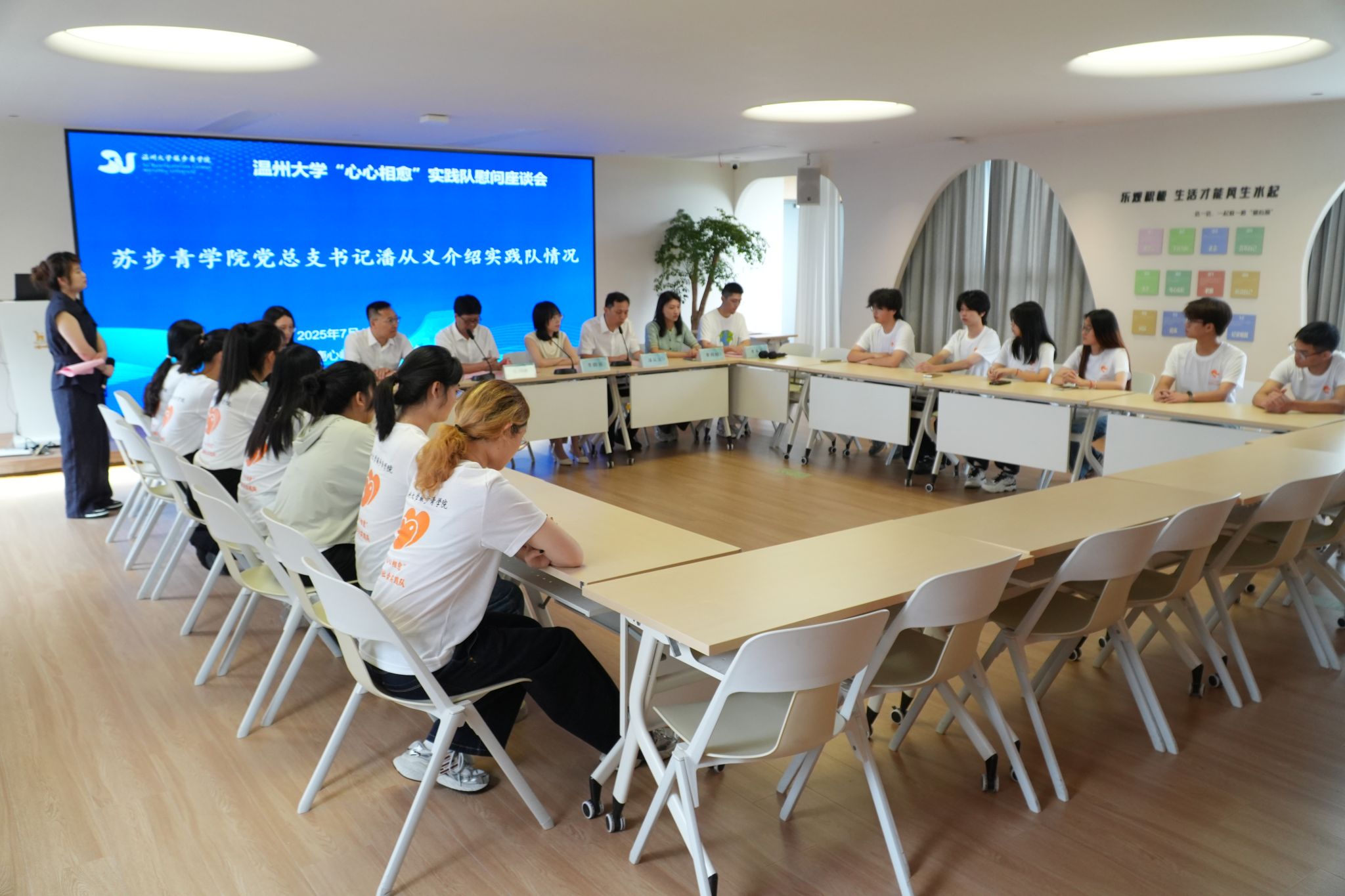 暑期实践队的到来表示欢迎。她回顾了学校与鹿城区团委开展校地合作取了一系列成绩,双方围绕“青春创新创业思想汇”、人工智能数字创新大会、青少年自护教育、“十万学子看温州”等项目持续联动,为鹿城青年发展型城市建设注入高校智慧。李璐颖指出,团区委将同步优化对接机制、精准匹配需求、拓展实践基地,为温大学子提供坚实保障,携手书写校地合作新篇章。