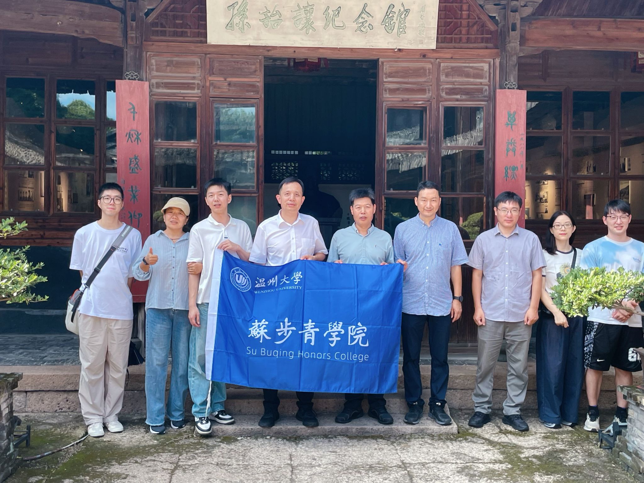 随后,全体成员来到忠义街的玉海楼藏书馆。作为浙江四大藏书楼之一,玉海楼以“玉成桃李,海纳江河”的理念承载着深厚的文脉底蕴。成员们漫步于古色古香的院落中,参观珍贵的古籍藏书、名人手稿与历史文献,聆听藏书楼主人孙诒让先生潜心治学、传承文化的事迹,在墨香与古建交织的氛围里,深刻体会到中华传统文化的博大精深,也激发了对文化传承与知识探索的热情。