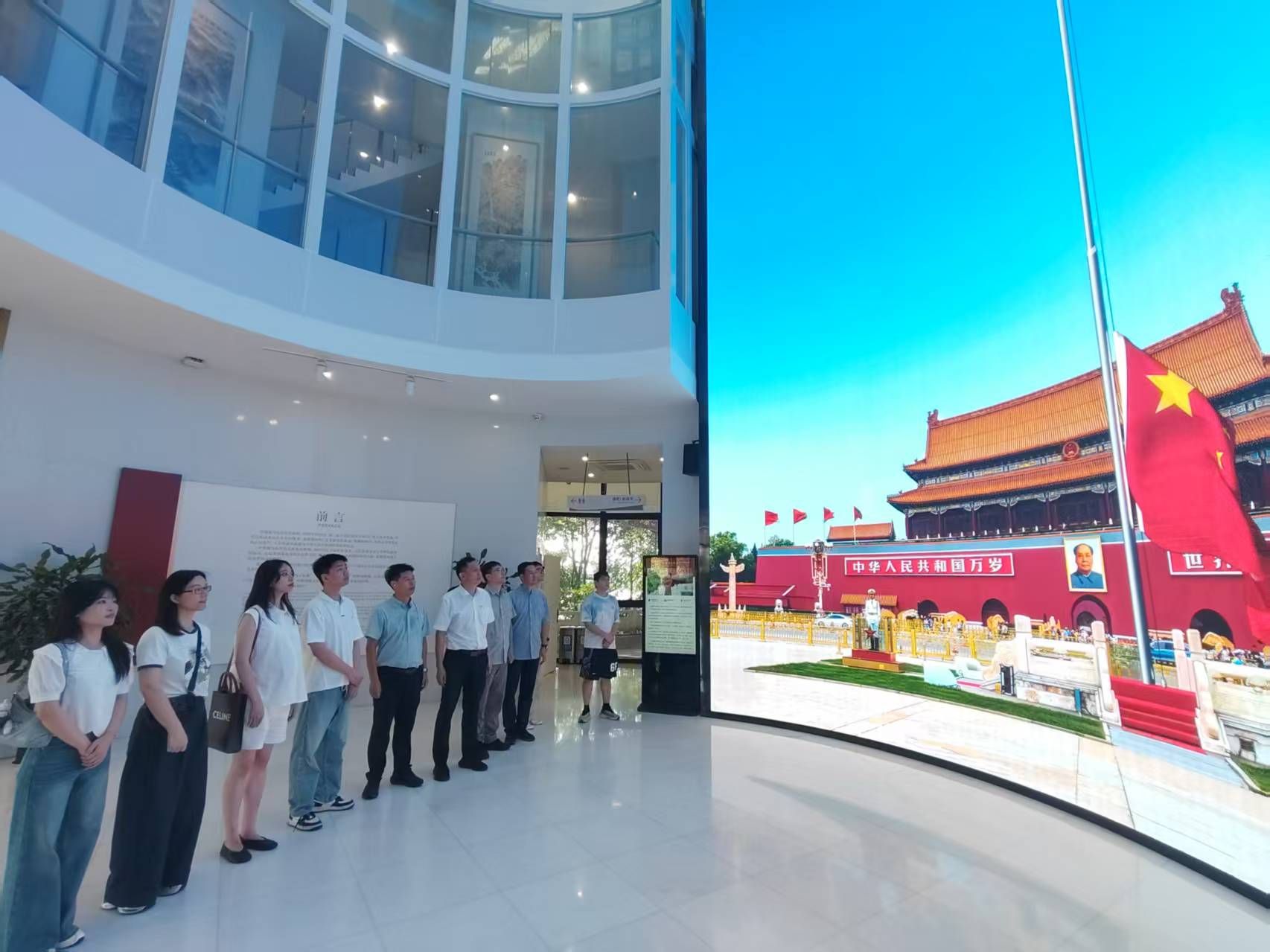 在瑞安国旗教育馆,成员们通过图文展板、实物陈列与沉浸式影像,系统了解国旗的设计历程、象征意义及背后的爱国故事。从开国大典上升起的第一面五星红旗,到新时代各国升旗仪式中的中国国旗风采,一个个鲜活案例让大家直观感受到“国旗”所承载的民族精神与国家荣耀,进一步坚定了爱国爱党、履职担当的信念。