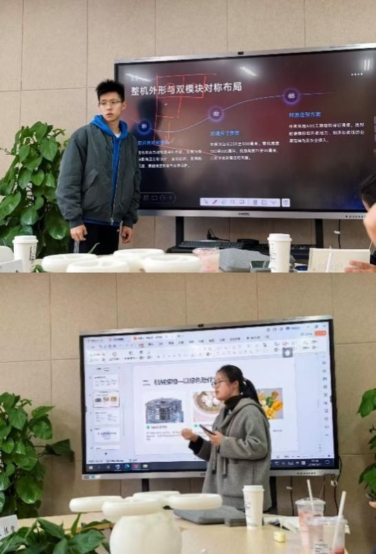 指导会现场科创氛围浓厚,交流研讨热烈。同学们围绕机器人结构设计、创新创意及居家应用等环节,依次展示作品雏形。三位专家老师结合机器人赛事评审标准、技术前沿趋势与多年指导经验,逐一细致点评、精准把脉,提出创新痛点。