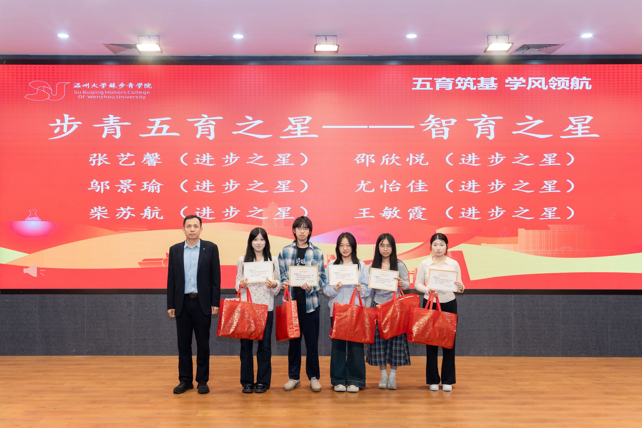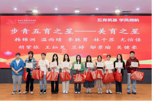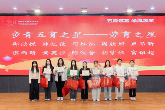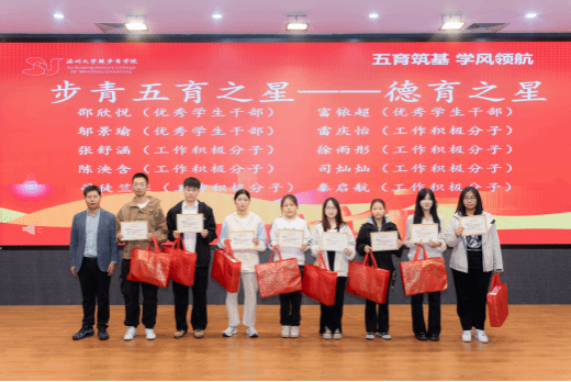 本次表彰大会共有五个议程,授予“德育之星,智育之星,体育之星,美育之星,劳育之星”五种奖项。在智育方面,除了个人奖,23步青生物班、24级步青汉语言班、24级步青数学班、24级步青生物班在期末考试中绩点达到预设目标,并获得专业swag视频