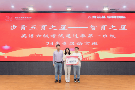 排名第一的好成绩,特此为以上4个班级给予奖励。此外,24级步青汉语言班在本次英语六级考试中,通过率全院第一,特给予奖励。
